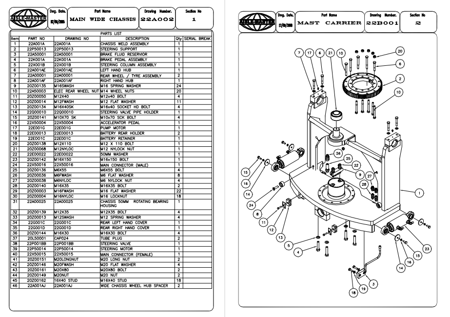 Aisle Master electric forklift parts catalog, displaying an organized layout of parts with labels and technical informationAisle Master ELECTRIC Forklift Parts Catalog