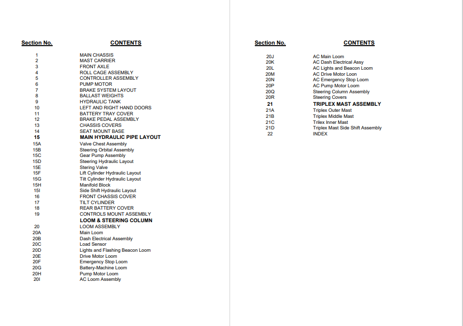 Discover the Aisle Master Electric Forklift Parts Catalog, your comprehensive resource for sourcing high-quality replacement parts for Aisle Master electric forklifts. This meticulously organized catalog features detailed listings of essential components, ensuring you can quickly find the parts you need to maintain optimal performance and safety in your operations. With easy navigation and clear specifications, this catalog is an invaluable tool for warehouse managers and maintenance teams looking to enhance efficiency and reduce downtime. Invest in the longevity of your equipment with the Aisle Master Electric Forklift Parts Catalog today