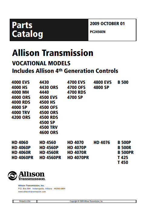 Allison 4000 Product Family Spare Parts Catalogue