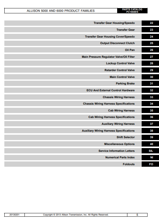Allison 5000, 6000 Product Family Spare Parts Catalogue