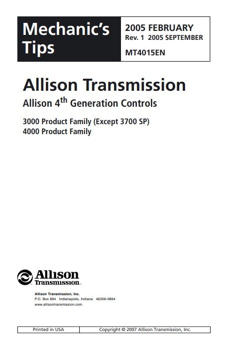 Allison 4th Generation Controls 3000-4000 Product Family – Mechanic’s Tips