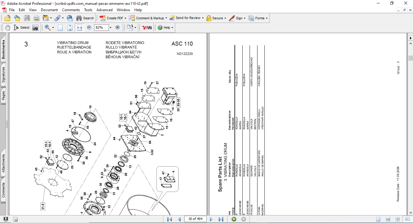 AMMANN ASC 110 Road Roller Spare Parts Manual cover featuring detailed diagrams and part listings for maintenance and repairsAMMANN ASC 110 Road Roller Spare Parts Manual