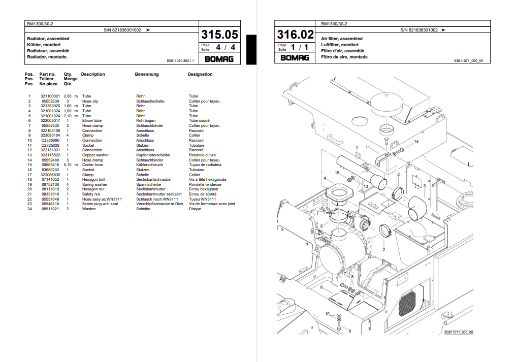 Discover the comprehensive Bomag BM1300-30-2 Cold Milling Planer Parts Catalogue, your essential resource for maintaining and optimizing your milling equipment. This detailed catalogue features an extensive list of high-quality parts, ensuring you can easily find the components needed for repairs and upgrades. With clear illustrations and part numbers, it simplifies the ordering process, helping you keep your machinery running smoothly and efficiently. Invest in this catalogue to enhance the longevity and performance of your Bomag cold milling planer