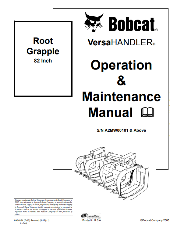 Bobcat Root Grapple 82 Inch Operation & Maintenance Manual
