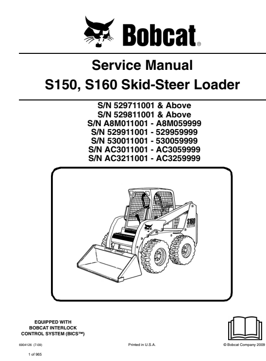 Bobcat S150, S160 SkidSteer Loader Service Repair Manual