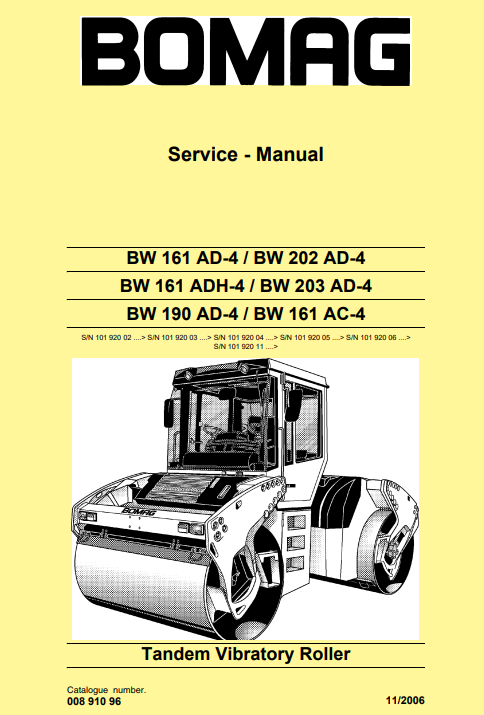 Bomag BW 161 AD-4, BW 202 AD-4, BW 161 ADH-4, BW 203 AD-4, BW 190 AD-4, BW 161 AC-4 Service Repair Manual