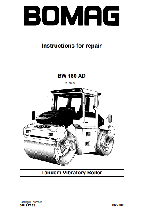 Bomag BW 180 AD Tandem Vibratory Roller Repair Instructions Service Manual