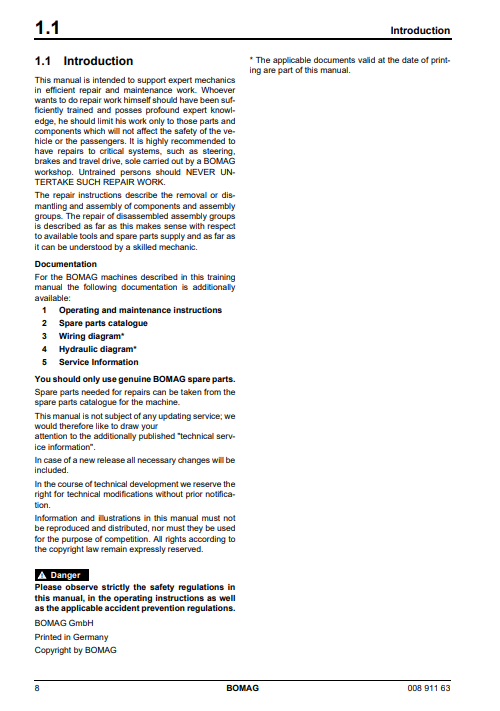 With This Original Factory Service Repair Manual The Technician can Find and Solve any problems encountered in the operation of your Bomag Road Roller Models of :
