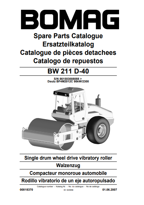 | Package include | Bomag Road Roller BW 211 D-40 Spare Parts Catalogue |