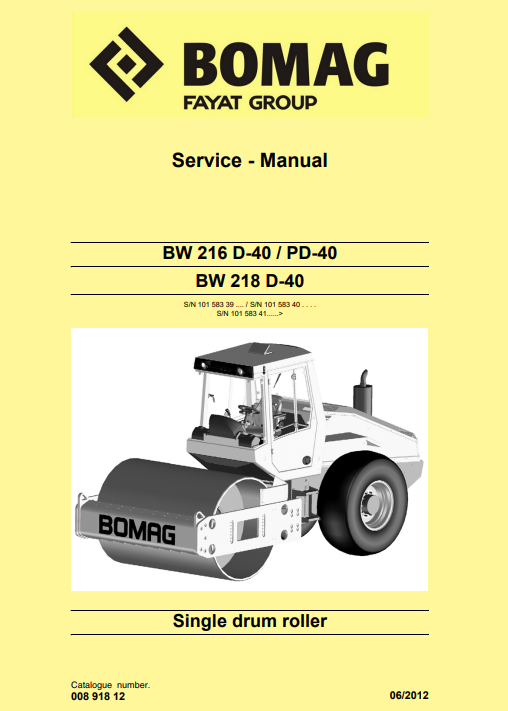 Bomag BW 216 D-40, BW 216 P-40, BW 218 D-40 Service Repair Manual