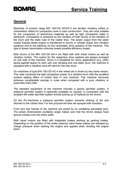 Bomag BW100 AD-AC, BW120 AD-AC Road Roller Service Training Manual