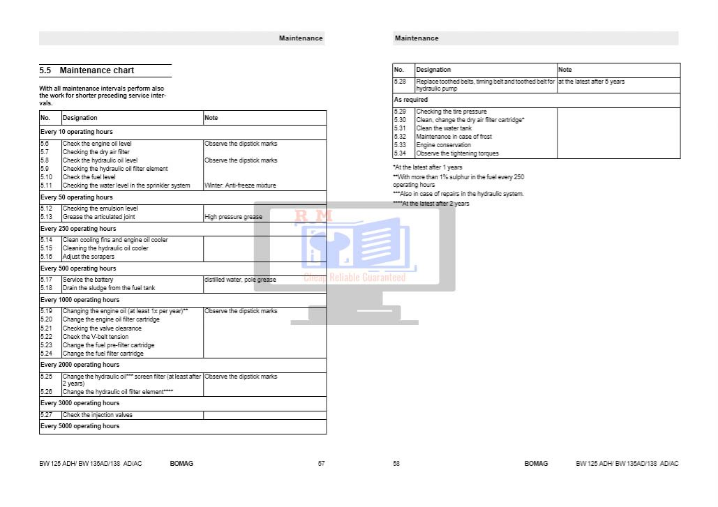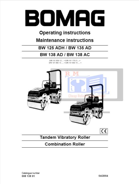 Bomag BW125AD to BW138AD Operation and Maintenance Manual