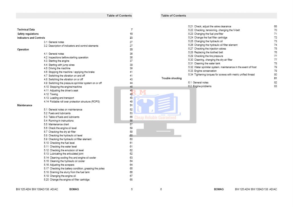 With This Operation and Maintenance Manual The Technician can solve any problems encountered in the operation of your Bomag Road Roller Models of :