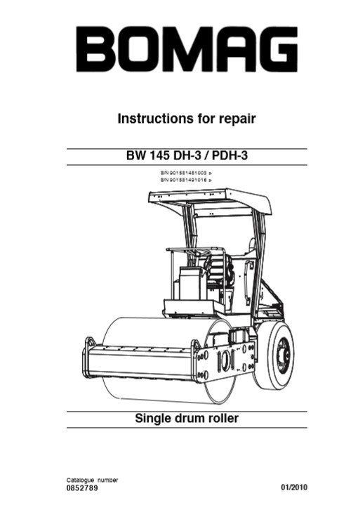 The Bomag BW145DH-3 and BW145PDH-3 Service Manual is an essential resource for maintaining the performance and longevity of your equipment. This comprehensive guide provides detailed instructions, diagrams, and troubleshooting tips, ensuring that you can efficiently service and repair your Bomag machinery. With clear, step-by-step procedures, this manual empowers operators and technicians to perform maintenance with confidence, minimizing downtime and maximizing productivity. Invest in this service manual to keep your Bomag equipment running smoothly and efficiently