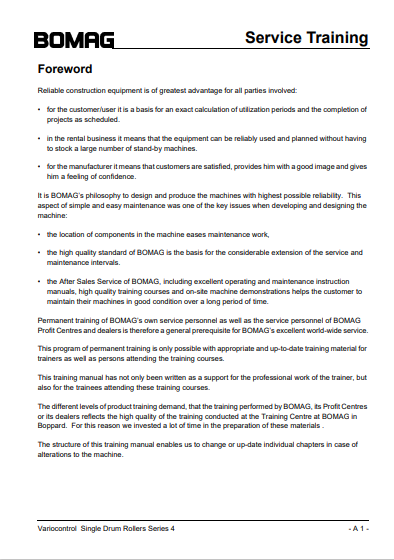 Bomag BW177, BW213, BW226 Series 4 Service Training Manual
