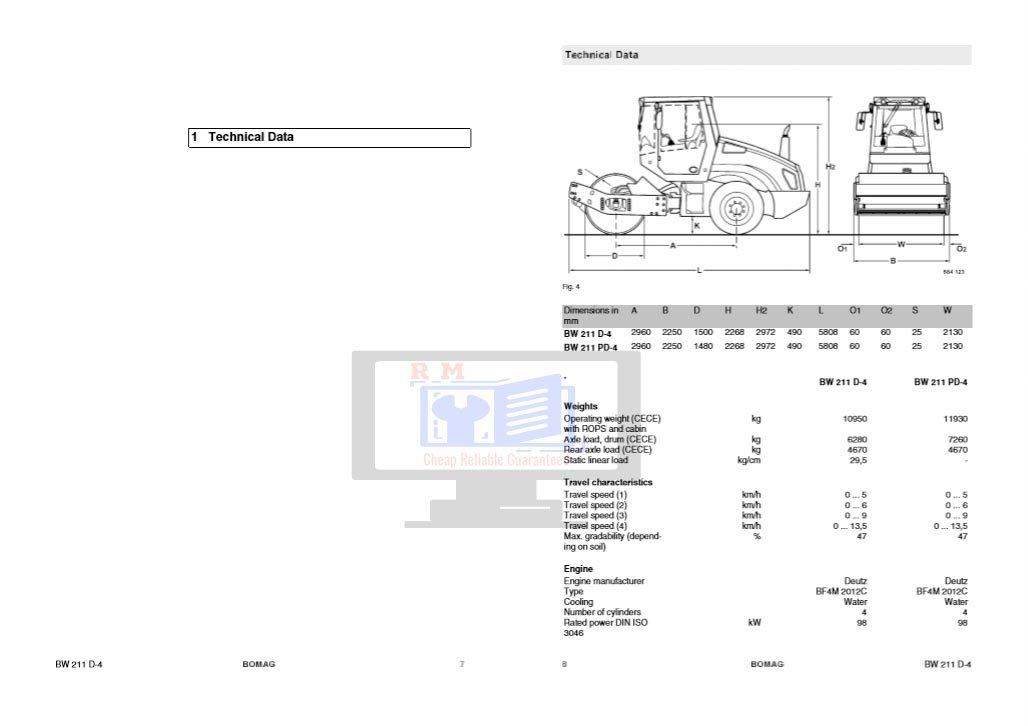 Package include Bomag BW211D-4 Operating-Maintenance Manual