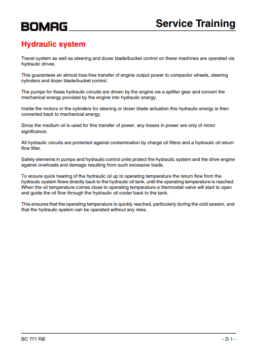 Bomag Refuse Compactor BC771 RB Service Training Manual