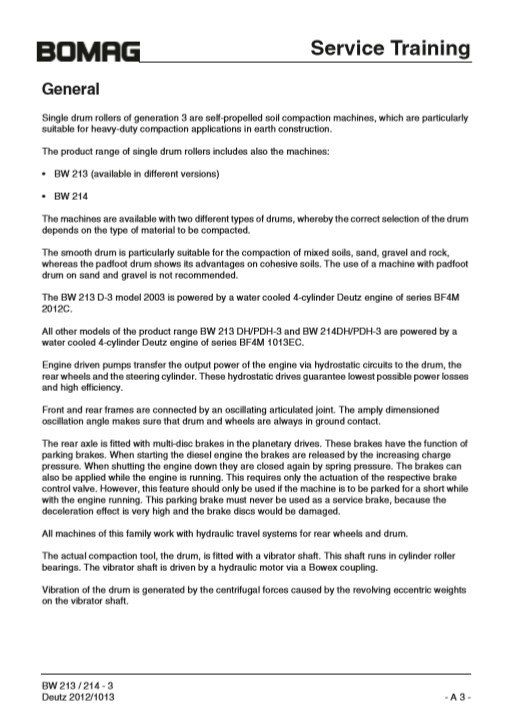 Bomag BW213-3 , BW214-3 Series Service Training Manual