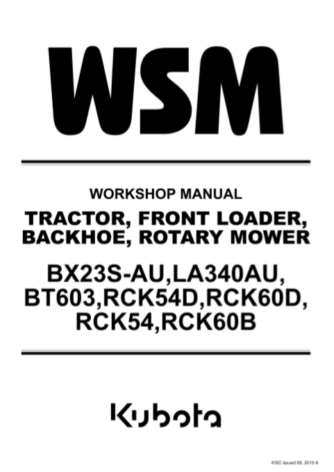 Kubota BX23S, LA340, BT603, RCK54D, RCK60D, RCK54, RCK60B Tractors Workshop Repair Manual