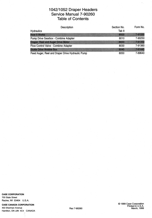 Case 1042, 1052 Draper Headers Service Repair Manual