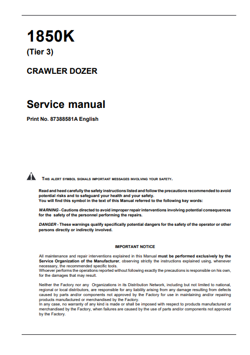 Case 1850K Tier 3 Crawler Dozer Service Repair Manual