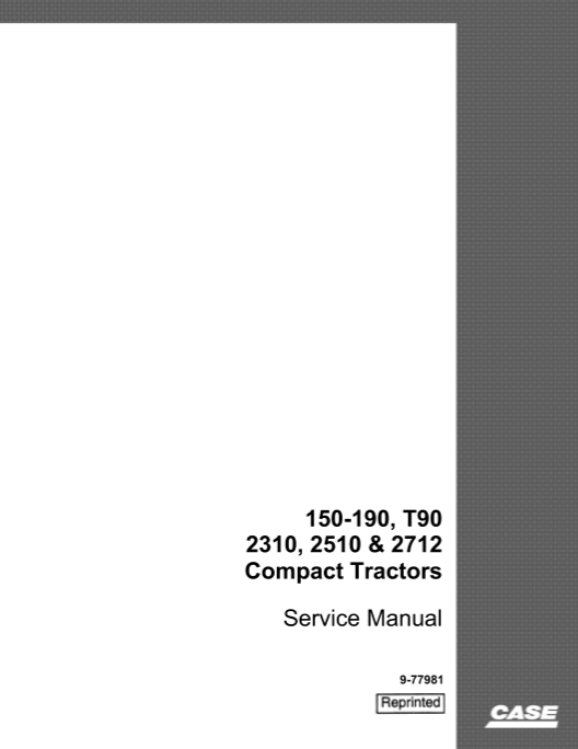 Service repair manual for Case 150-190, T90, 2310, 2510, and 2712 tractors, detailing maintenance and troubleshooting proceduresCase 150-190, T90, 2310, 2510, 2712 Tractors Service Repair Manual