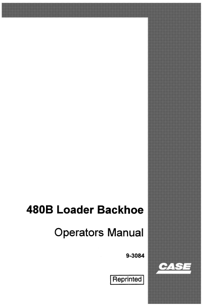 Case 480B Backhoe Loader Operators Manual cover featuring the model name and an illustration of the backhoe loaderCase 480B Backhoe Loader Operators Manual