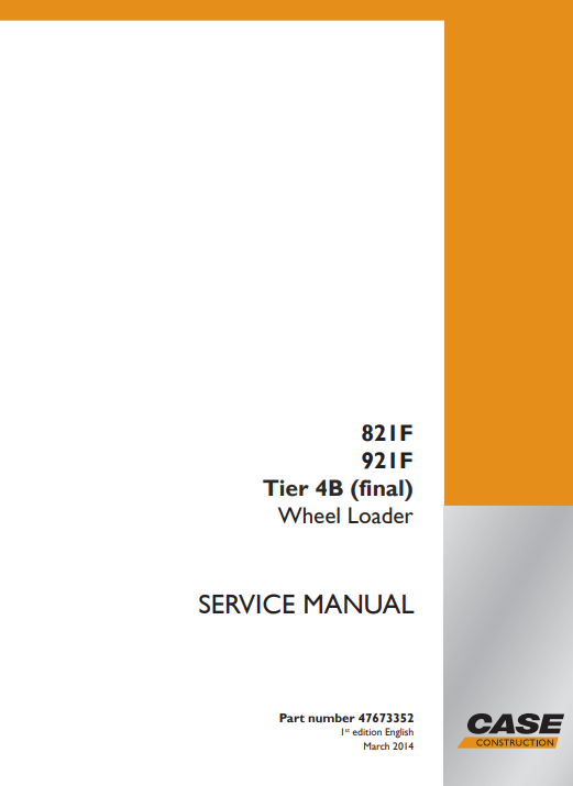 Case 821F, 921F Tier 4B Wheel Loader Service Repair Manual