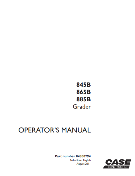Case 845B, 865B, 885B Motor Grader Operatosr Manual