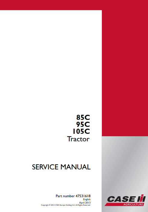 Comprehensive repair manual for Case 85C, 95C, and 105C tractors, including service guidelines and troubleshooting tipsCase 85C, Case 95C, Case105C Tractor Service Repair Manual