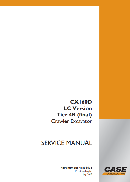 The Case CX160D-LC Excavator Service Repair Manual is an essential resource for any technician or DIY enthusiast looking to maintain or repair their excavator with precision and confidence. This comprehensive manual provides detailed instructions, schematics, and troubleshooting tips specifically tailored for the CX160D-LC model, ensuring that you have all the information needed to perform routine maintenance, diagnose issues, and execute repairs effectively. With clear illustrations and step-by-step guidance, this manual simplifies complex procedures, making it easier to keep your excavator in optimal working condition. Whether you are addressing hydraulic system concerns, engine performance issues, or general upkeep, this service manual is designed to enhance your understanding and efficiency, ultimately saving you time and money on repairs. Invest in the Case CX160D-LC Excavator Service Repair Manual today and empower yourself with the knowledge to keep your machinery running smoothly for years to come