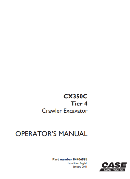 Case CX350C Tier 4 Crawler Excavator Operator’s Manual