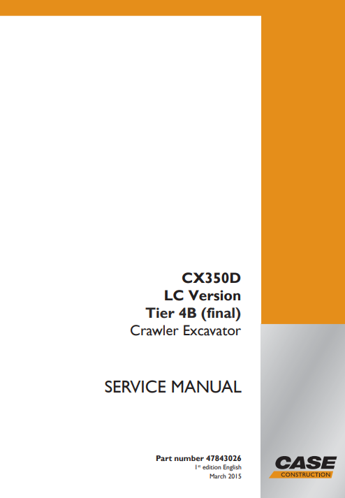 Case CX350D-LC Version Tier 4B Crawler Excavator Service Repair Manual