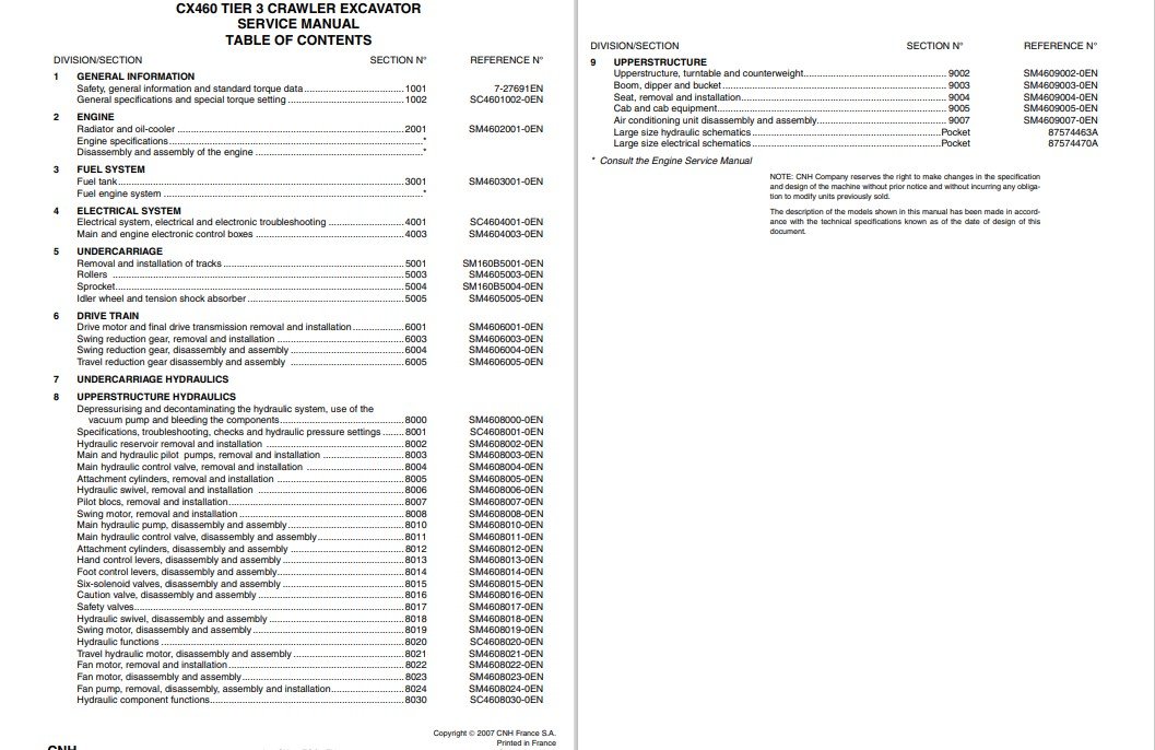 Case CX460 Tier 3 Excavator Service Repair Manual