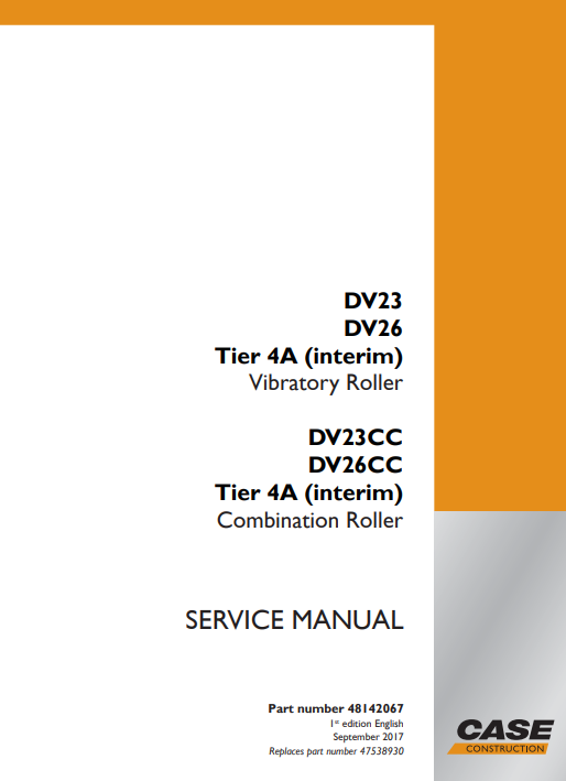 Case DV23, DV26 Tier 4A (interim) Vibratory Roller Service Repair Manual