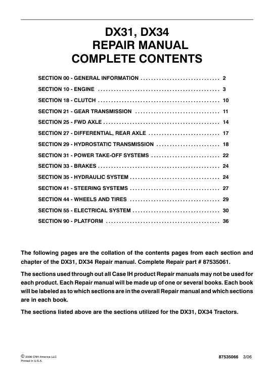 | Included Items | Official and Complete Service Repair Manual for Case IH DX34 Tractor |
