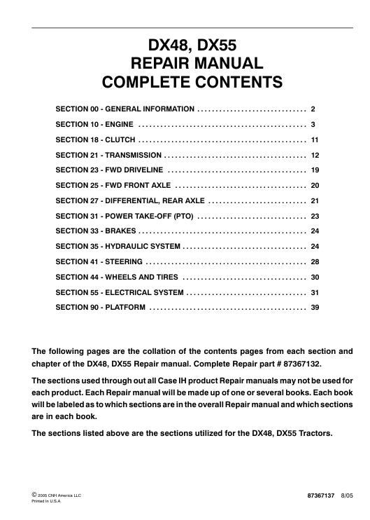 | Included Items | Official Service Repair Manual for Case IH DX55 Tractor |