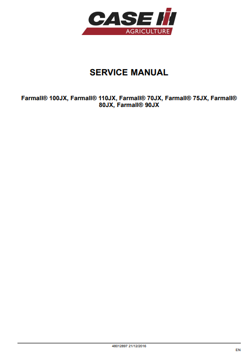 The full potential of your Case Farmall tractors with the comprehensive Service Repair Manual designed specifically for the Farmall 100JX, 110JX, 70JX, 75JX, 80JX, and 90JX models. This meticulously crafted manual serves as an essential resource for both seasoned mechanics and DIY enthusiasts, providing detailed instructions on maintenance, troubleshooting, and repair procedures. With clear diagrams, step-by-step guidance, and in-depth technical specifications, you can confidently tackle any issue that arises, ensuring your tractors operate at peak performance. Whether you’re performing routine maintenance or addressing complex repairs, this manual equips you with the knowledge and tools necessary to keep your equipment running smoothly and efficiently, ultimately saving you time and money. Invest in your machinery’s longevity and reliability with this indispensable guide, and experience the difference in your farming operations