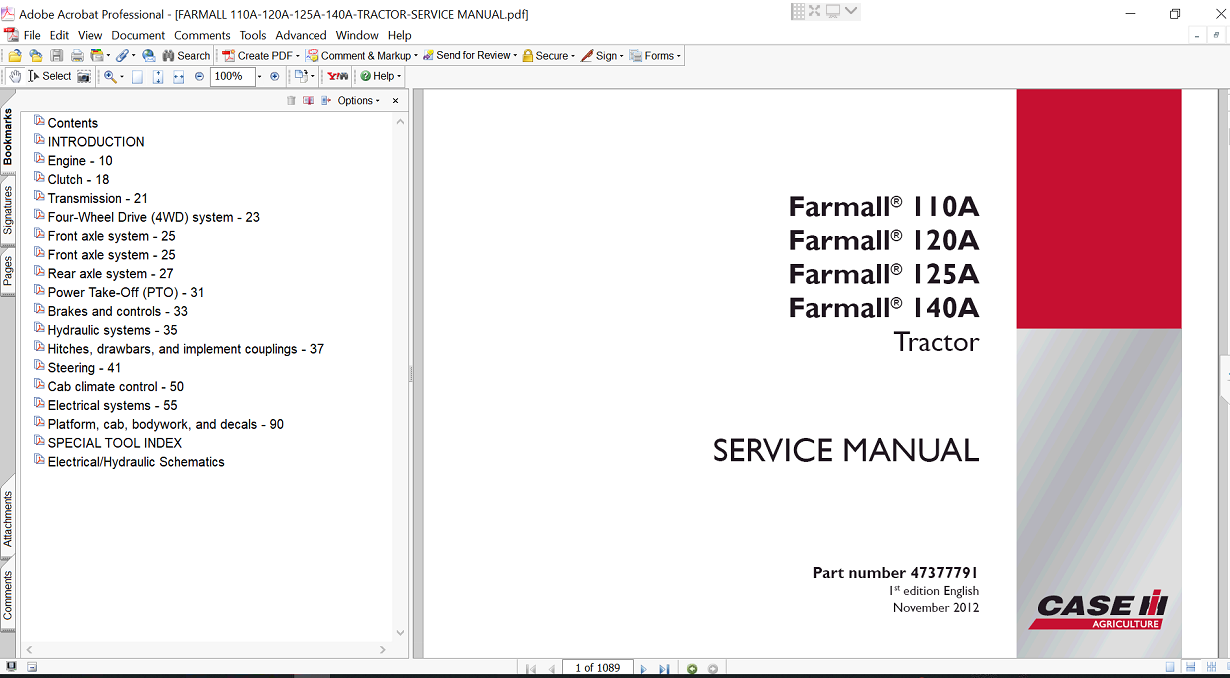The Service Repair Manual for the Case Farmall 125A Tractor is an essential resource for any owner or mechanic looking to maintain and repair this powerful machine. This comprehensive guide provides detailed instructions, diagrams, and troubleshooting tips, ensuring you can efficiently address any issues that arise. With its user-friendly format, you can easily navigate through sections to find the information you need, saving you time and money on repairs