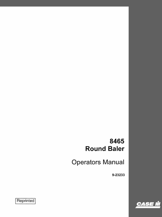 Enhance your baling efficiency with the Operator’s Manual for the Case IH 8465 Round Baler. This comprehensive guide provides essential information on operation, maintenance, and troubleshooting, ensuring you get the most out of your equipment. With clear instructions and detailed diagrams, you can easily navigate the features of the baler, optimize performance, and extend its lifespan. Invest in this manual to ensure your baling tasks are executed smoothly and effectively, making it an indispensable resource for any operator