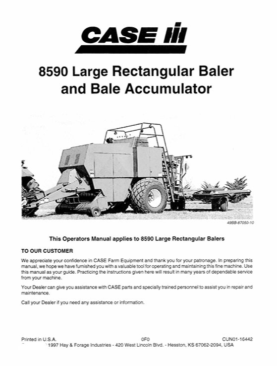 | Included Items | Operator’s Manual for Case IH 8590 Baler |