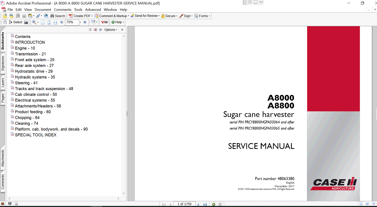 The Service Repair Manual for the Case A8800 Sugar Cane Harvester is an essential resource for maintaining and repairing your equipment efficiently. This comprehensive guide provides detailed instructions, diagrams, and troubleshooting tips, ensuring that you can keep your harvester in optimal working condition. With clear, step-by-step procedures, this manual empowers operators and technicians alike to perform repairs with confidence, minimizing downtime and maximizing productivity in the field. Invest in this manual to enhance the longevity and performance of your Case A8800 Sugar Cane Harvester