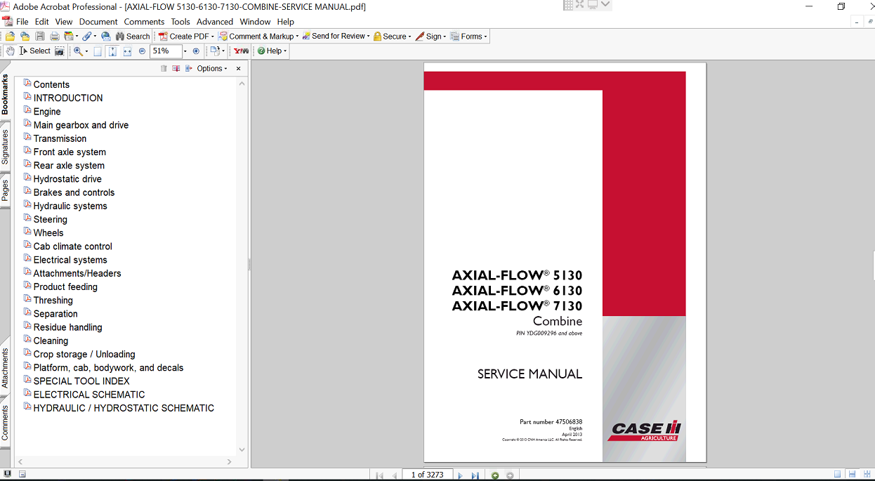 | Included Items | Complete Service Repair Manual for Case IH Axial Flow 5130 Combine |