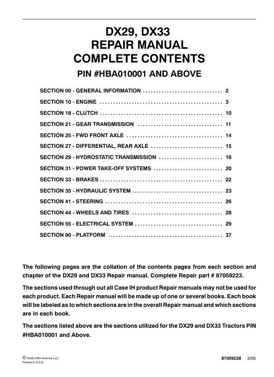 Included Items Official and Complete Service Repair Manual for Case IH DX33 Tractor