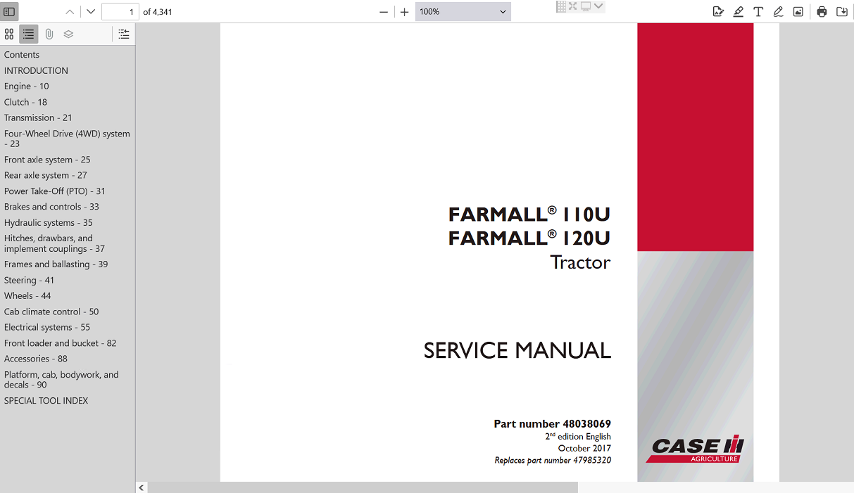 | Included Items | Complete Service Repair Manual for Case IH Farmall 120U Tractor |
