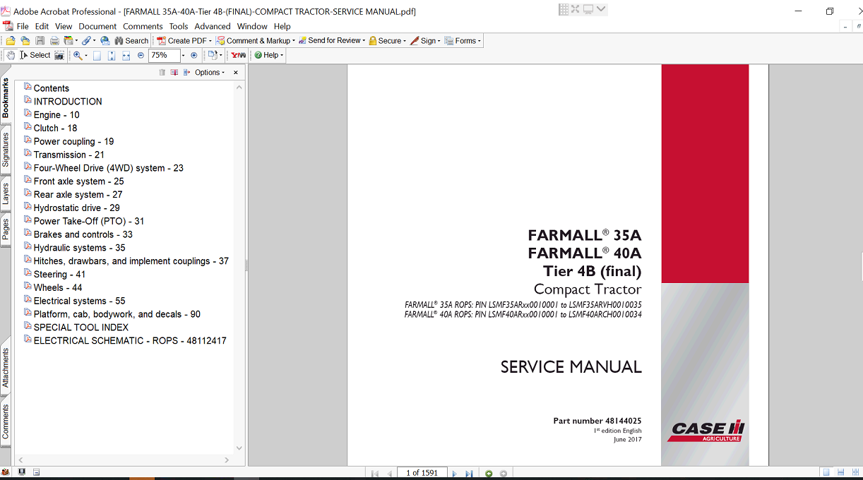The Service Repair Manual for the Case IH Farmall 40A Compact Tractor is an essential resource for any owner or technician looking to maintain and repair this powerful machine. This comprehensive manual provides detailed instructions, diagrams, and troubleshooting tips, ensuring you can efficiently address any issues that arise. With its user-friendly format, you can easily navigate through sections covering engine maintenance, hydraulic systems, and electrical components, empowering you to keep your tractor in peak condition and extend its lifespan. Invest in this manual today to enhance your repair skills and ensure your Farmall 35A operates at its best