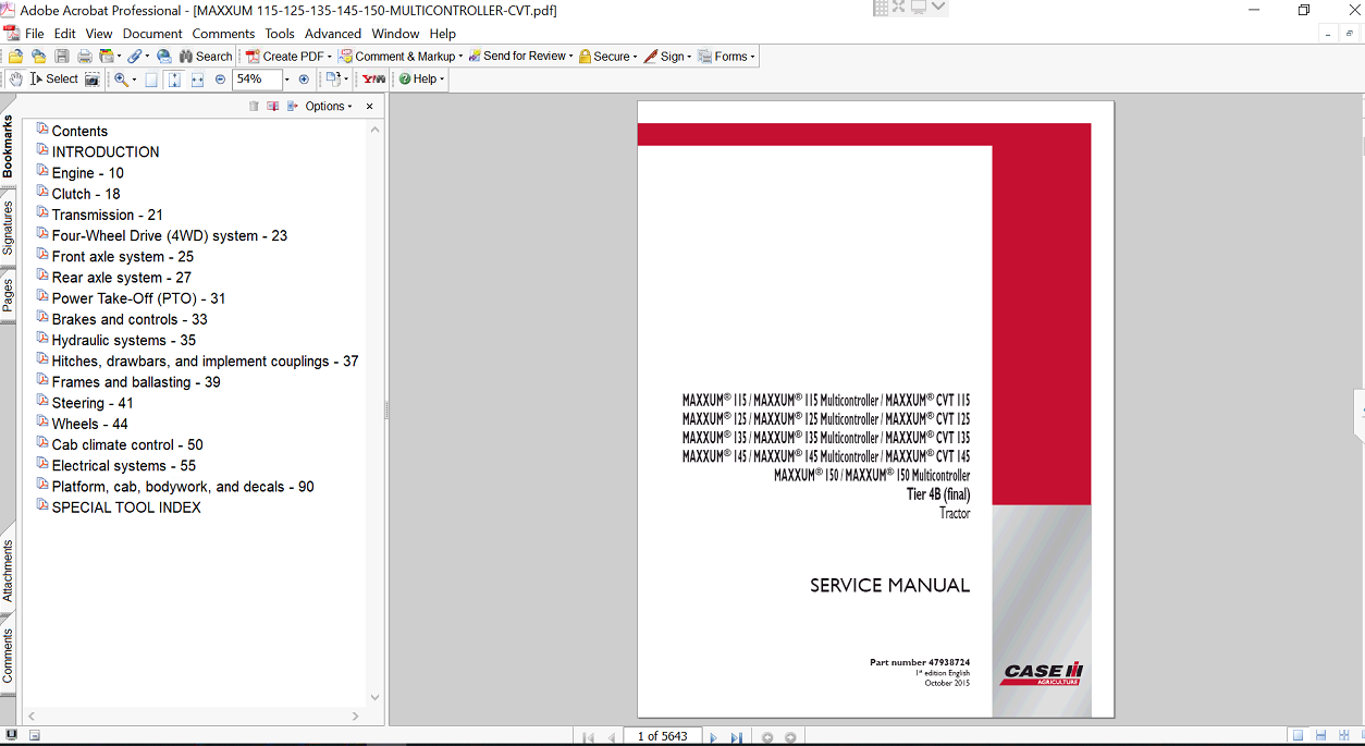 | Included Items | Complete Service Repair Manual for Case IH Maxxum 125 Multicontroller |