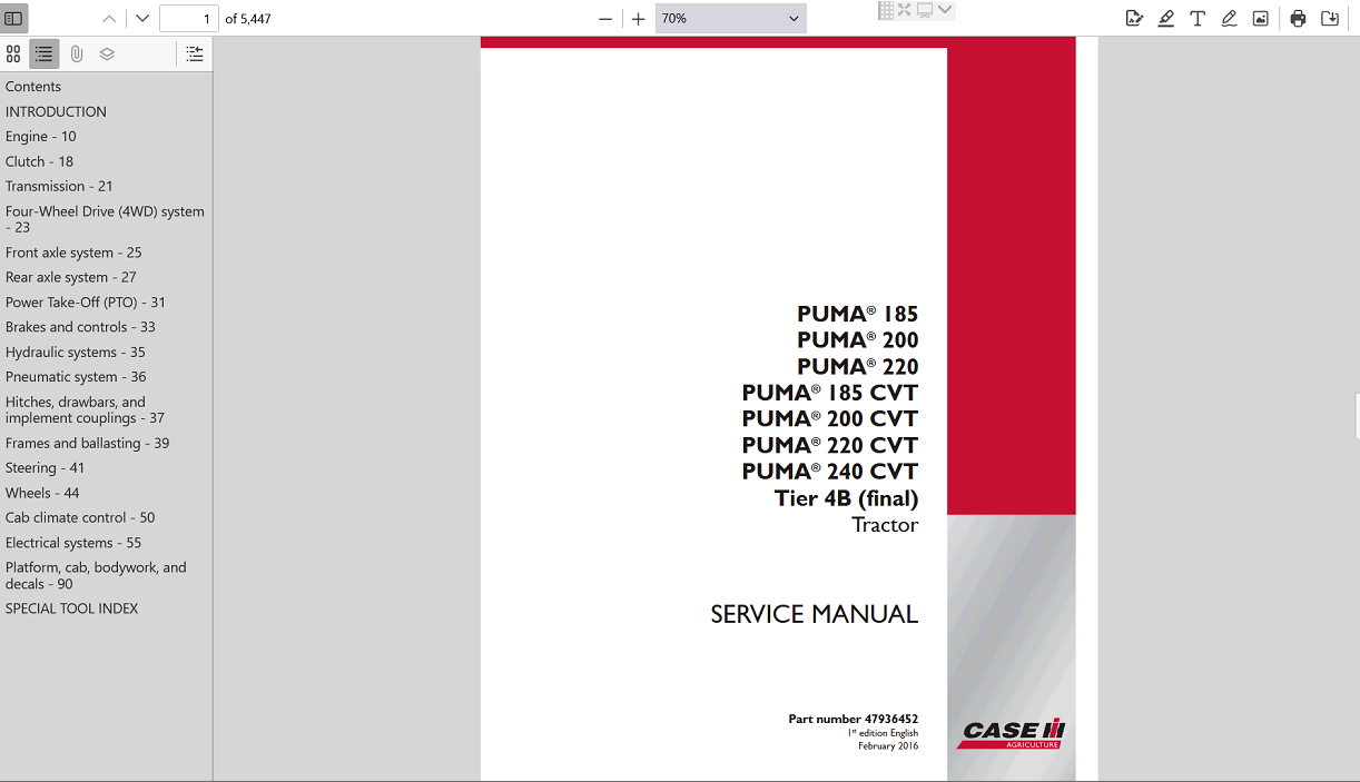 | Included Items | Complete Service Repair Manual for Case IH Puma 220 CVT Tractor |