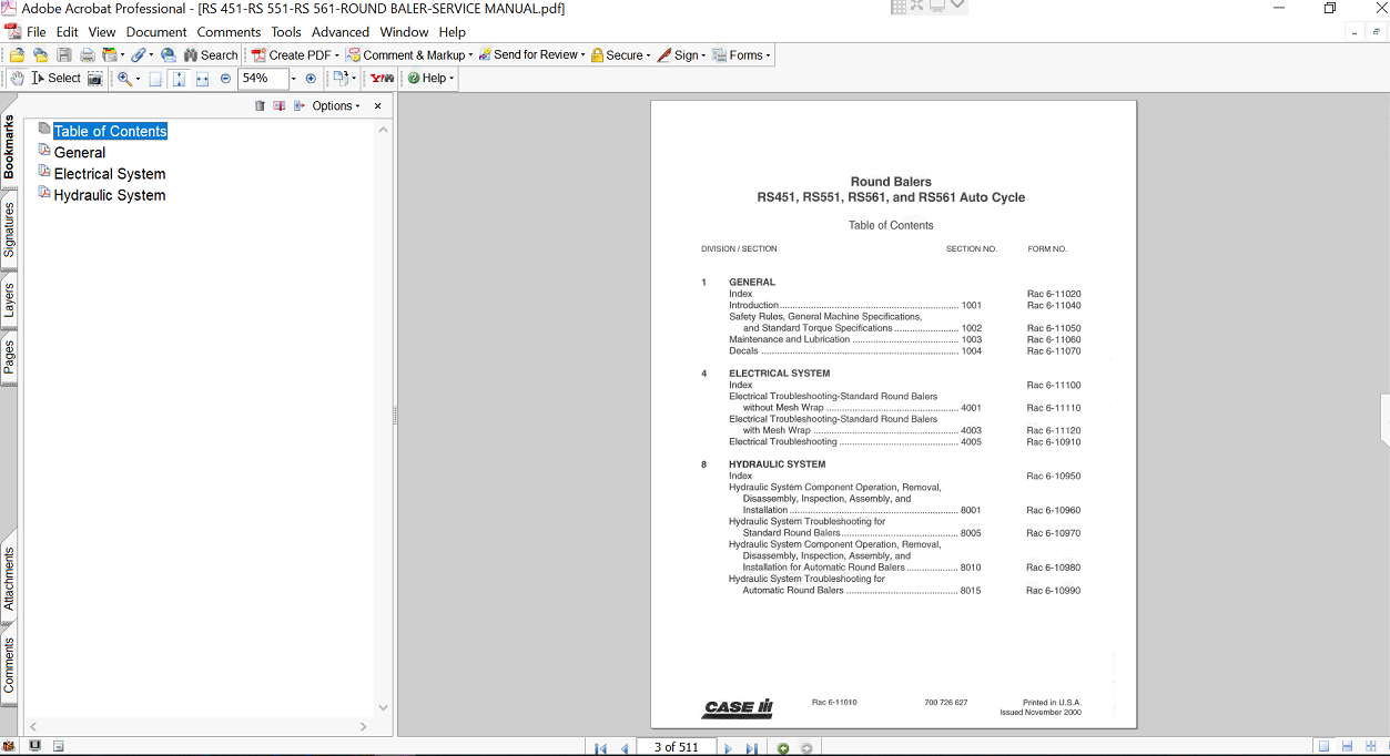 Included Items Complete Service Repair Manual for Case IH RS561 Round Baler