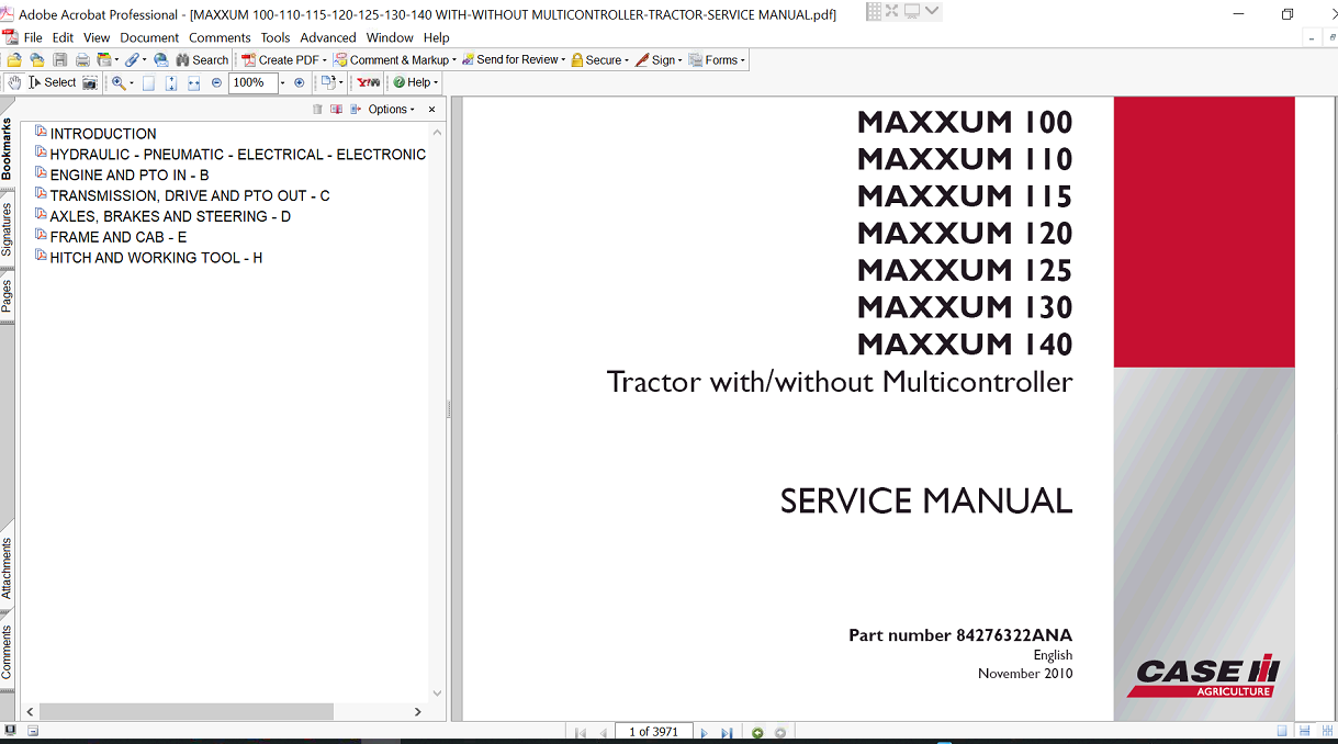 The Service Repair Manual for the Case Maxxum 100 Tractor is an essential resource for any owner or technician looking to maintain and repair this powerful machine. This comprehensive guide provides detailed instructions, diagrams, and troubleshooting tips, ensuring you can efficiently address any issues that arise. With its user-friendly format, you can easily navigate through complex repairs